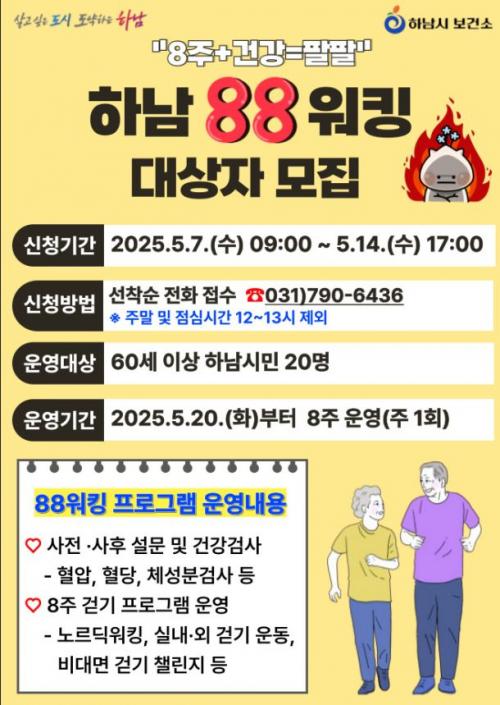 [½Åµ¿¾Æ¹æ¼Û Çϳ²½Ã=À̽ŵ¿±âÀÚ] Çϳ²½Ã´Â °Ç°­ÇÑ »ýȰ½À°ü Çü¼ºÀ» À§ÇØ 60¼¼ ÀÌ»ó ½Ã¹ÎÀ» ´ë»óÀ¸·Î ¡®Çϳ² 88 ¿öÅ·¡¯ °È±â ÇÁ·Î±×·¥ Âü°¡ÀÚ 20¸íÀ» ¼±Âø¼øÀ¸·Î ¸ðÁýÇÑ´Ù. À̹ø ÇÁ·Î±×·¥Àº 2025³âµµ °æ±âµµ °È±â ÇÁ·Î±×·¥ ÀÏȯÀ¸·Î ÃßÁøµÇ´Â »ç¾÷À¸·Î °È±â Àü¹® °­»ç¡¦