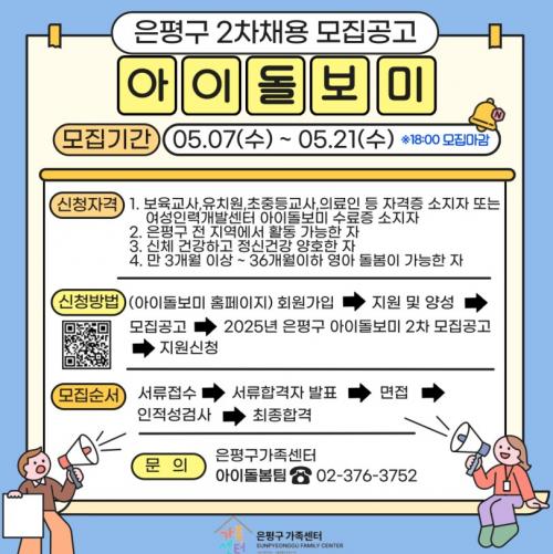 [½Åµ¿¾Æ¹æ¼Û ÀºÆò±¸=À̽ŵ¿±âÀÚ] ¼­¿ï ÀºÆò±¸´Â ¸Â¹úÀÌ °¡Á¤°ú ¾çÀ° °ø¹é ¹ß»ý °¡Á¤ÀÇ ¾çÀ° ºÎ´ãÀ» ´ú±â À§ÇØ ¿À´Â 21ÀϱîÁö ¾ÆÀ̵¹º¸¹Ì ä¿ëÀ» ÇÑ´Ù°í ¹àÇû´Ù. À̹ø ä¿ëÀº µ¹º½ ÀÎ·Â È®ÃæÀ» ÅëÇØ ¾ÆÀ̵¹º½¼­ºñ½º ÀÌ¿ë ´ë±â °¡±¸ ¼ö¸¦ ÁÙÀ̰í, ¾ÆÀ̵éÀÌ ¾ÈÀüÇÏ°í µû¡¦