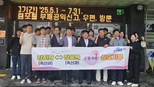 [½Åµ¿¾Æ¹æ¼Û Àü³²ÀåÈï=¹Ú±¤¿Á±âÀÚ] °­Áø±º°ú ÀåÈﱺÀÇ Ãà»ê°ú Á÷¿øµéÀÌ Áö³­ 15ÀÏ °íÇâ»ç¶û±âºÎÁ¦ »óÈ£±âºÎ¸¦ ÅëÇØ Áö¿ª°£ »ó»ý°ú ¿¬´ëÀÇ ¸ð¹üÀ» º¸¿´´Ù. À̹ø ±âºÎ´Â µÎ Áö¿ªÀÇ ±º Ãà»ê°ú Á÷¿øµé 20¿© ¸íÀÌ ÀÚ¹ßÀûÀ¸·Î Âü¿©ÇØ ÃÑ 200¸¸¿øÀÇ °íÇâ»ç¶û±âºÎ±ÝÀ» »óÈ£ ±â¡¦