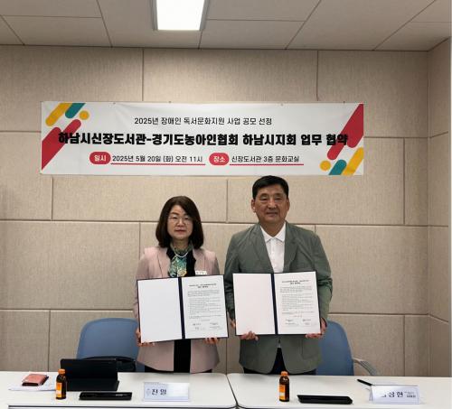 [½Åµ¿¾Æ¹æ¼Û Çϳ²½Ã=À̽ŵ¿±âÀÚ] Çϳ²½Ã´Â 5¿ù 20ÀÏ, ½ÅÀåµµ¼­°ü 3Ãþ ¹®È­±³½Ç¿¡¼­ °æ±âµµ³ó¾ÆÀÎÇùȸ Çϳ²½ÃÁöȸ¿Í ¡¸2025³â Àå¾ÖÀÎ µ¶¼­¹®È­ÇÁ·Î±×·¥ Áö¿ø»ç¾÷¡¹ ÃßÁøÀ» À§ÇÑ ¾÷¹«Çù¾àÀ» ü°áÇß´Ù. À̹ø Çù¾àÀº Áö¿ª»çȸ ³» ¹®È­¼Ò¿Ü°èÃþÀÎ ³óÀÎÀÇ µ¶¼­ Á¢±Ù¼ºÀ» ³ô¡¦