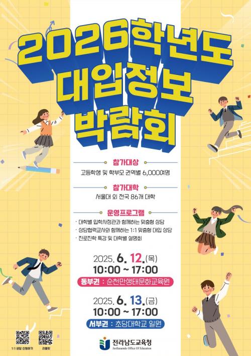 [½Åµ¿¾Æ¹æ¼Û Àü³²=À̽ŵ¿±âÀÚ] Àü¶ó³²µµ±³À°Ã»Àº ¿À´Â 6¿ù 12ÀÏ Àü¶ó³²µµ±³À°Ã»¼øÃµ¸¸»ýŹ®È­±³À°¿ø°ú 13ÀÏ ÃÊ´ç´ëÇб³¿¡¼­ ¡®2026Çг⵵ ´ëÀÔÁ¤º¸ ¹Ú¶÷ȸ¡¯¸¦ °³ÃÖÇÑ´Ù. À̹ø ¹Ú¶÷ȸ´Â 2026Çг⵵ ´ëÀÔ Á¦µµÀÇ º¯È­¿¡ ¹ß¸ÂÃç ¼öÇè»ý°ú Çкθ𰡠²À ¾Ë¾Æ¾ß ÇÒ ÇÙ½É ¡¦