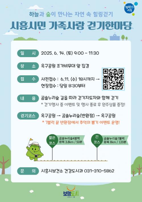 [½Åµ¿¾Æ¹æ¼Û ½ÃÈï½Ã=À̽ŵ¿±âÀÚ] ½ÃÈï½Ã°¡ 2025³â ù ¹øÂ°¡¸½ÃÈï½Ã¹Î °¡Á·»ç¶û °È±âÇѸ¶´ç¡¹À» 6¿ù 14ÀÏ¿Á±¸°ø¿ø¿¡¼­ °³ÃÖÇÑ´Ù. °È±â ÄÚ½º´Â ¿Á±¸°ø¿ø Á¶°¡ºñ¹«´ë¸¦ Ãâ¹ßÇØ °õ¼Ö´©¸®½£À» ¹ÝȯÁ¡À¸·Î µÇµ¹¾Æ¿À´Â ¿Õº¹ 2°³ÀÇ ÄÚ½º·Î(ªÀº ÄÚ½º : ¿Õº¹ 3.8km/50ºÐ, ±ä ¡¦
