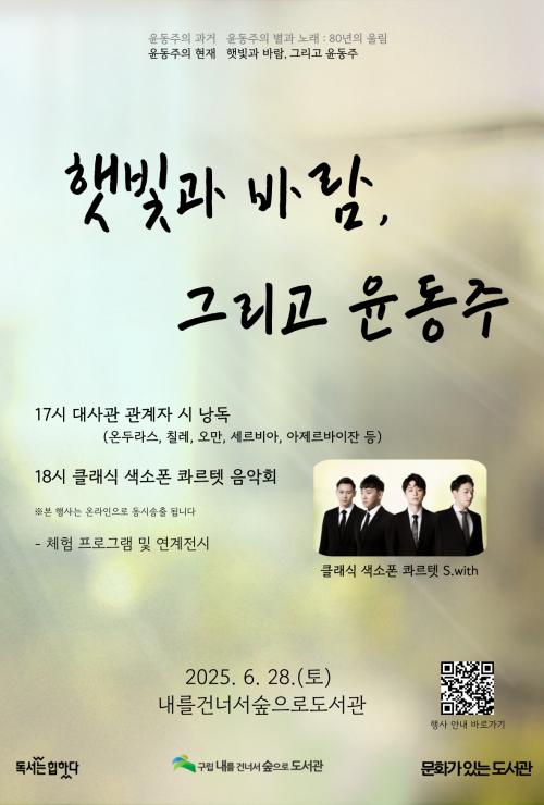 [½Åµ¿¾Æ¹æ¼Û ÀºÆò±¸=À̽ŵ¿±âÀÚ] ¼­¿ï ÀºÆò±¸´Â ¿À´Â 28ÀÏ ³»¸¦ °Ç³Ê¼­ ½£À¸·Î µµ¼­°ü °³°ü 7ÁÖ³âÀ» ¸Â¾Æ À±µ¿ÁÖ ¼­°Å 80ÁÖ±â 2¹øÂ° Çà»ç¸¦ °³ÃÖÇÑ´Ù°í ¹àÇû´Ù. ¡®ÇÞºû°ú ¹Ù¶÷, ±×¸®°í À±µ¿ÁÖ¡¯¶ó´Â ÁÖÁ¦·Î À±µ¿ÁÖÀÇ ½ÃÀû Á¤½ÅÀ» ¼¼°è·Î È®ÀåÇϱâ À§ÇØ ¿©·¯ ÁÖÇÑ ¿Ü±¹¡¦