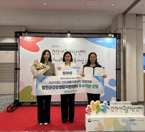 [½Åµ¿¾Æ¹æ¼Û °æ³²ÇÔ¾È=À̽ŵ¿±âÀÚ] ÇԾȱº°Ç°­»ýȰÁö¿ø¼¾ÅÍ´Â Áö³­ 25ÀÏ °Ç°­»ýȰÁö¿ø¼¾ÅÍ ¿î¿µ ¼º°ú´ëȸ¿¡¼­ ¿ì¼ö±â°üÀ¸·Î ¼±Á¤µÇ¾î Àå·Á»óÀ» ¼ö»óÇß´Ù°í ¹àÇû´Ù. À̹ø ¼º°ú´ëȸ´Â Àü±¹ °Ç°­»ýȰÁö¿ø¼¾Å͸¦ ´ë»óÀ¸·Î, Áö¿ª ¸ÂÃãÇü °Ç°­ÁõÁø ÇÁ·Î±×·¥ ¿î¿µ µî Áö¿ªÁÖ¡¦