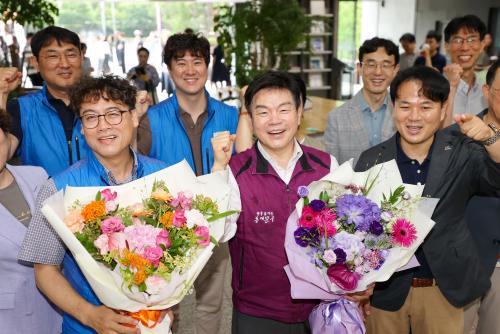 ¡°ÁÁ¾Æ¿ä, µ¿´ë¹®! Èû³»¿ä, ¿ì¸® ¸ðµÎ!¡± µ¿´ë¹®±¸, ¹Î¼± 8±â 3ÁÖ³â ¸Â¾Æ Á÷¿ø °Ý·Á