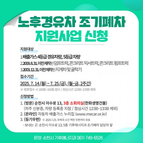 ¼øÃµ½Ã, 2025³â Á¶±âÆóÂ÷ º¸Á¶»ç¾÷ 14ÀϺÎÅÍ Á¢¼ö