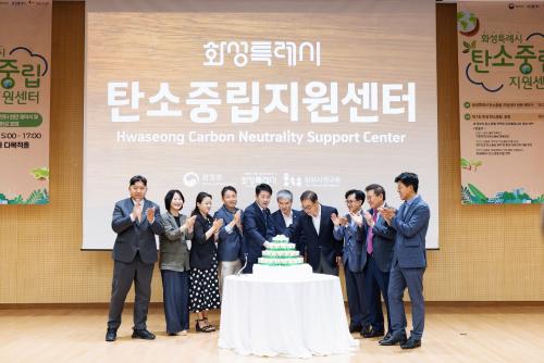 [½Åµ¿¾Æ¹æ¼Û=ÀÌÀçö±âÀÚ] È­¼ºÆ¯·Ê½Ã(½ÃÀå Á¤¸í±Ù)°¡ Áö³­ 10ÀÏ È­¼º½Ã¿¬±¸¿ø¿¡¼­ ¡®È­¼ºÆ¯·Ê½Ã ź¼ÒÁ߸³ Áö¿ø¼¾ÅÍ ÇöÆÇ Á¦¸·½Ä¡¯°ú ¡®Á¦1ȸ ź¼ÒÁ߸³ È­¼º Æ÷·³¡¯À» °³ÃÖÇϸç, ź¼ÒÁ߸³ ½ÇÇöÀ» À§ÇÑ °øµ¿ÀÇ ÀÇÁö¸¦ ´ÙÁ³´Ù. À̳¯ Çà»ç¿¡´Â Á¤±¸¿ø È­¼ºÆ¯·Ê½Ã Á¦1ºÎ½Ã¡¦
