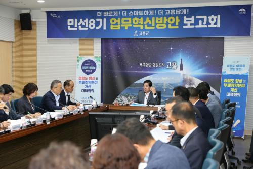 [½Åµ¿¾Æ¹æ¼Û Àü³²°íÈï=¹Ú±¤¿Á±âÀÚ] °íÈﱺ(±º¼ö °ø¿µ¹Î)Àº Áö³­ 21ÀÏ ±ºÃ» Èï¾çȦ¿¡¼­ ¡®¹Î¼± 8±â ¾÷¹«Çõ½Å¹æ¾È º¸°íȸ¡¯¸¦ °³ÃÖÇß´Ù. À̹ø º¸°íȸ´Â °ø¿µ¹Î ±º¼ö°¡ Á÷Á¢ ÁÖÀçÇßÀ¸¸ç, ºÎ±º¼ö¿Í ºÎ¼­Àå, °ü°è °ø¹«¿ø µî 50¿© ¸íÀÌ ÇÔ²²ÇØ ºÎ¼­º° ¾÷¹«Çõ½Å¹æ¾È 25°Ç¿¡ ¡¦