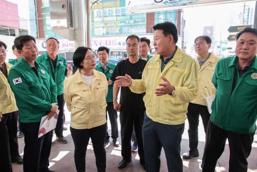 [½Åµ¿¾Æ¹æ¼Û=ÀÌÀçö±âÀÚ] ´çÁø½Ã(½ÃÀå ¿À¼ºÈ¯)´Â 27ÀÏ, ±â·ÏÀûÀÎ ÁýÁßÈ£¿ì·Î Å« ÇÇÇØ¸¦ ÀÔÀº ´çÁøÀüÅë½ÃÀåÀ» ÇѼº¼÷ Áß¼Òº¥Ã³±â¾÷ºÎ Àå°üÀÌ ±ä±Þ ¹æ¹®ÇØ º¹±¸ ÇöȲÀ» Á¡°ËÇϰí, ¼Ò»ó°øÀÎ Áö¿ø ´ëÃ¥ ¸¶·ÃÀ» À§ÇÑ °£´ãȸ¸¦ °¡Á³´Ù°í ¹àÇû´Ù. À̹ø ÇöÀå ¹æ¹®Àº Áö³­ 16ÀÏ¡¦