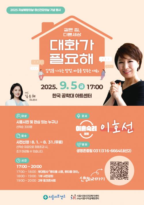 [½Åµ¿¾Æ¹æ¼Û ½ÃÈï½Ã=À̽ŵ¿±âÀÚ] ½ÃÈï½Ã´Â 2025³â Àڻ쿹¹æ¤ýÁ¤½Å°Ç°­Àdz¯À» ¸Â¾Æ ¿À´Â 9¿ù 5ÀÏ ¿ÀÈÄ 5½Ã, Çѱ¹°øÇдëÇб³ ¾ÆÆ®¼¾ÅÍ¿¡¼­ ½Ã¹Î°ú ÇÔ²²ÇÏ´Â ±â³äÇà»ç¸¦ °³ÃÖÇÑ´Ù. ¡®Àڻ쿹¹æÀÇ ³¯(9¿ù 10ÀÏ)¡¯°ú ¡®Á¤½Å°Ç°­ÀÇ ³¯(10¿ù 10ÀÏ)¡¯Àº °¢°¢ ¼¼°èº¸°Ç±â±¸(WHO¡¦