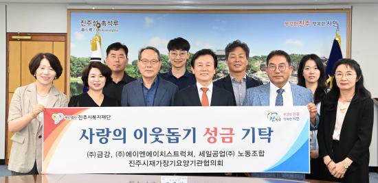 [½Åµ¿¾Æ¹æ¼Û °æ³²ÁøÁÖ=³²±Ã¿µ±â±âÀÚ] ÁøÁֽú¹ÁöÀç´ÜÀº 8ÀÏ ½Ãû ±â¾÷ÀÎÀÇ ¹æ¿¡¼­ Áö¿ª ³» ±â¾÷ ¹× ´Üü°¡ Âü¿©ÇÑ ¾î·Á¿î ÀÌ¿ôµ½±â ¼º±Ý ±âʽÄÀ» °¡Á³´Ù. À̳¯ ±âŹ½Ä¿¡¼­´Â ¢ß±Ý°­(ȸÀå ¹æ¸¸Çõ)¿¡¼­ ¼º±Ý 3500¸¸ ¿ø, ¢ß¿¡ÀÌ¿£¿¡ÀÌÄ¡½ºÆ®·°ÃÄ(´ëÇ¥ ¾ÈÇö¼ö)¿¡¼­ ¼º¡¦