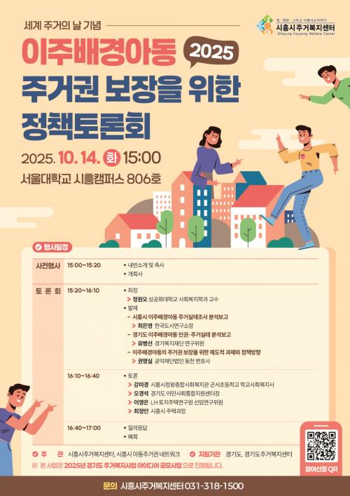 [½Åµ¿¾Æ¹æ¼Û ½ÃÈï½Ã=À̽ŵ¿±âÀÚ] ½ÃÈï½ÃÁְź¹Áö¼¾ÅÍ´Â ¿À´Â 10¿ù 14ÀÏ ¿ÀÈÄ 3½Ã, ¼­¿ï´ëÇб³ ½ÃÈïÄ·ÆÛ½º 806È£¿¡¼­ ¡®ÀÌÁÖ¹è°æ¾Æµ¿ ÁÖ°Å±Ç º¸ÀåÀ» À§ÇÑ Á¤Ã¥Åä·Ðȸ¡¯¸¦ °³ÃÖÇÑ´Ù. À̹ø Åä·Ðȸ´Â ¡®¼¼°è ÁÖ°ÅÀÇ ³¯¡¯À» ±â³äÇØ ¸¶·ÃµÈ ÀÚ¸®·Î, Áö¿ª»çȸ Áְź¹Áö °úÁ¦¡¦