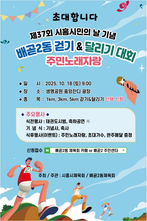 [½Åµ¿¾Æ¹æ¼Û ½ÃÈï½Ã=À̽ŵ¿±âÀÚ] ½ÃÈï½Ã ¹è°ð2µ¿ üÀ°È¸¿¡¼­´Â Áö¿ªÁֹΠ°£ È­ÇÕ°ú °Ç°­ ÁõÁøÀ» µµ¸ðÇϱâ À§ÇØ ¿À´Â 10¿ù 18ÀÏ ¿ÀÀü 9½Ã, ¹è°ð»ý¸í°ø¿ø ÀÏ´ë¿¡¼­ ¡®¹è°ð2µ¿ °È±â¤ý´Þ¸®±â ´ëȸ¡¯¸¦ °³ÃÖÇÑ´Ù. À̹ø ´ëȸ´Â 1km, 3km, 5km ÄÚ½º·Î ±¸¼ºµÅ ³²³à³ë¼Ò ´©±¸¡¦