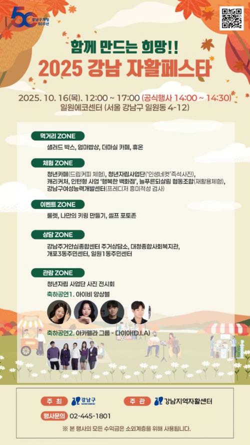 [½Åµ¿¾Æ¹æ¼Û °­³²±¸=À̽ŵ¿±âÀÚ] ²ÞÀÌ ¸ðÀÌ´Â µµ½Ã, ¹Ì·¡¸¦ ±×¸®´Â °­³²±¸°¡ 10¿ù 16ÀÏ ³· 12½ÃºÎÅÍ ¿ÀÈÄ 5½Ã±îÁö ÀÏ¿ø¿¡ÄÚ¼¾ÅÍ¿¡¼­ ¡®2025 °­³² ÀÚȰÆä½ºÅ¸¡¯¸¦ °³ÃÖÇÑ´Ù. À̹ø Çà»ç´Â ÀÚȰ»ç¾÷ÀÇ Àǹ̸¦ ³Î¸® ¾Ë¸®°í, ÀÚȰ±Ù·Î Âü¿©ÀÚÀÇ ÀÚ¸³ ÀÇÁö¸¦ ÀÀ¿øÇϱâ À§ÇØ¡¦