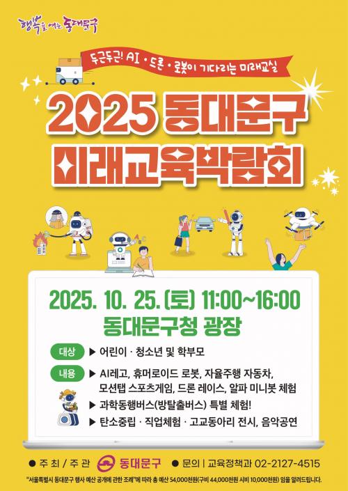 [½Åµ¿¾Æ¹æ¼Û µ¿´ë¹®±¸=À̽ŵ¿±âÀÚ] ¼­¿ï µ¿´ë¹®±¸´Â ¿À´Â 25ÀÏ µ¿´ë¹®±¸Ã» ±¤Àå¿¡¼­¡º2025³â µ¿´ë¹®±¸ ¹Ì·¡±³À°¹Ú¶÷ȸ¡»¸¦ °³ÃÖÇÑ´Ù°í ¹àÇû´Ù. ¡°¹Ì·¡¸¦ ¿©´Â ¹è¿ò, ÇÔ²² ¸¸µå´Â ±³À°µµ½Ã µ¿´ë¹®¡±À» ºñÀüÀ¸·Î ÇÑ À̹ø ¹Ú¶÷ȸ´Â ¾î¸°ÀÌ¿Í Ã»¼Ò³âµéÀÌ ÀΰøÁö´É(AI)°ú ¡¦