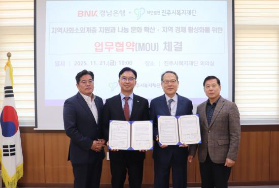 [½Åµ¿¾Æ¹æ¼Û °æ³²ÁøÁÖ=³²±Ã¿µ±â±âÀÚ] Àç´Ü¹ýÀÎ ÁøÁֽú¹ÁöÀç´ÜÀº 21ÀÏ, BNK°æ³²ÀºÇà°ú Áö¿ª»çȸ ¼Ò¿Ü°èÃþ Áö¿ø°ú ³ª´®¹®È­ È®»ê, Áö¿ª°æÁ¦ Ȱ¼ºÈ­¸¦ À§ÇÑ ¾÷¹« Çù¾àÀ» ü°áÇß´Ù°í ¹àÇû´Ù. À̹ø Çù¾àÀº ¾ç ±â°üÀÌ º¸À¯ÇÑ ÀÚ¿ø°ú ¿ª·®À» °øÀ¯ÇÏ¿© ÁøÁֽùÎÀÇ º¹Áö ÁõÁø¡¦