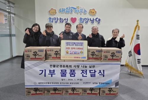 [½Åµ¿¾Æ¹æ¼Û=ÀÌÀçö±âÀÚ] ´ëÇѹα¹Àü¸ô±º°æÀ¯Á·È¸ °æ±âµµÁöºÎ È­¼º½ÃÁöȸ(ÁöȸÀå Ȳ»ó¿µ)°¡ Áö³­ 19ÀÏ ³²¾çÀ¾ÇàÁ¤º¹Áö¼¾ÅÍ¿¡ Áö¿ª ³» ¾î·Á¿î ÀÌ¿ôµéÀ» µ½±â À§ÇÑ ¶ó¸é 20¹Ú½º¸¦ ±âŹÇÏ¸ç µû¶æÇÑ ³ª´®ÀÇ ¶æÀ» ÀüÇß´Ù. À̹ø ³ª´®Àº º´¿À³â »õÇØ¸¦ ¸Â¾Æ Áö¿ª»çȸ ÀÌ¿ôµé¡¦