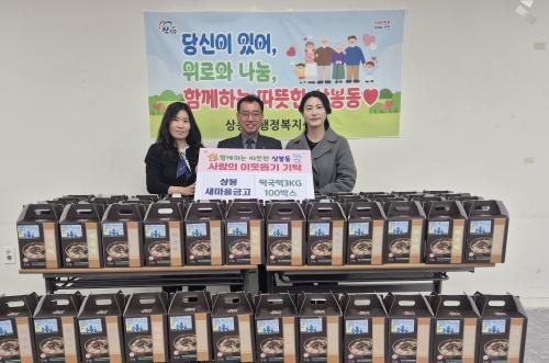 [½Åµ¿¾Æ¹æ¼Û °æ³²ÁøÁÖ=³²±Ã¿µ±â±âÀÚ] ÁøÁÖ »óºÀ»õ¸¶À»±Ý°í´Â Áö³­ 4ÀÏ ´Ù°¡¿À´Â ¼³ ¸íÀýÀ» ¸Â¾Æ Áö¿ª ³» ¾î·Á¿î ÀÌ¿ôµé¿¡°Ô Àü´ÞÇØ ´Þ¶ó¸ç ¶±±¹¶±(3kg) 100¹Ú½º(ȯ°¡¾× 200¸¸ ¿ø »ó´ç)¸¦ »óºÀµ¿ ÇàÁ¤º¹Áö¼¾ÅÍ¿¡ ±âŹÇß´Ù. À̹ø ±âŹÀº »õÇØÀÇ ¾È³ç°ú Èñ¸ÁÀ» ³ª´©±â ¡¦