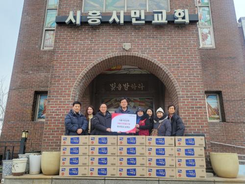 [½Åµ¿¾Æ¹æ¼Û ½ÃÈï½Ã=À̽ŵ¿±âÀÚ] ½ÃÈï½Ã ¹Ì»êµ¿¿¡ À§Ä¡ÇÑ ½ÃÈï½Ã¹Î±³È¸´Â Áö³­ 2¿ù 10ÀÏ, ½ÅÇöµ¿ Áö¿ª»çȸº¸ÀåÇùÀÇü¿¡ Áï¼® ¶±±¹ 20»óÀÚ¸¦ Àü´ÞÇϸç ÀÌ¿ô »ç¶ûÀ» ½ÇõÇß´Ù. À̹ø ³ª´®Àº Áö¿ª Áֹΰú ¿ÂÁ¤À» ³ª´©±â À§ÇÑ ±³¿ìµéÀÇ ¶æÀ» ¸ð¾Æ, Áö³­ 1³â°£ ±¸Á¦ºÎ¸¦ Áß¡¦