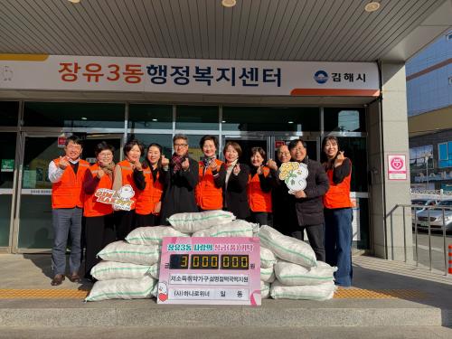 [½Åµ¿¾Æ¹æ¼Û °æ³²±èÇØ=³²±Ã¿µ±â±âÀÚ] (»ç)Çϳª·ÎÀ§³Ê´Â Áö³­ 12ÀÏ ¼³ ¸íÀýÀ» ¸Â¾Æ ÀåÀ¯Áö¿ª(ÀåÀ¯1¡¤2¡¤3µ¿)³» Àú¼Òµæ Ãë¾à°¡±¸ Áö¿øÀ» À§ÇÏ¿© ¶±±¹ ¶± ÃÑ 1.2kg 300ºÀÁö(¾à 300¸¸¿ø »ó´ç)Àü´ÞÇÏ¿´´Ù. ÇØ¸¶´Ù (»ç)Çϳª·ÎÀ§³Ê´Â ¿¬¸» ¿¬½Ã¿¡ ȸ¿ø ¸ðµÎ°¡ ¸¶À½À» ¸ð¡¦