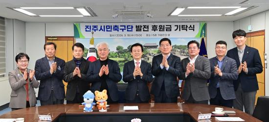 [½Åµ¿¾Æ¹æ¼Û °æ³²ÁøÁÖ=±è¸í¼ö±âÀÚ] ÁøÁֽô 18ÀÏ ÁøÁÖ½Ãû ±â¾÷ÀÎÀÇ ¹æ¿¡¼­ NH³óÇù ÁøÁÖ½ÃÁöºÎ¿Í °æ³²ÀºÇàÀÇ ¡®ÁøÁֽùÎÃ౸´Ü ¹ßÀüÀ» À§ÇÑ ÈÄ¿ø±Ý Àü´Þ½Ä¡¯À» °³ÃÖÇß´Ù°í ¹àÇû´Ù. À̳¯ Àü´Þ½Ä¿¡´Â Á¶±ÔÀÏ ÁøÁÖ½ÃÀå(ÁøÁֽùÎÃ౸´Ü ±¸´ÜÁÖ)°ú ÀÌÅ¿ë NH³óÇù ÁøÁÖ½ÃÁö¡¦