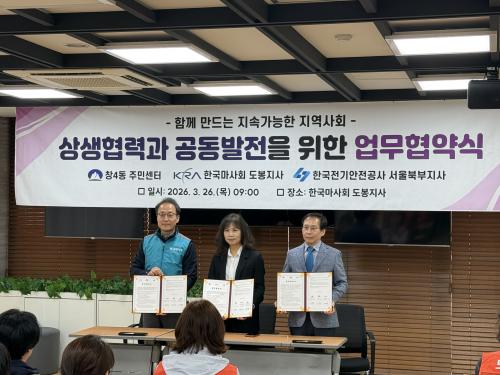 [½Åµ¿¾Æ¹æ¼Û µµºÀ±¸=À̽ŵ¿±âÀÚ] ¼­¿ï µµºÀ±¸ â4µ¿Àº Áö³­ 3¿ù 26ÀÏ Çѱ¹¸¶»çȸ µµºÀÁö»ç 1Ãþ ÀüÀÚÄ«µå¼¾ÅÍ¿¡¼­ Çѱ¹¸¶»çȸ µµºÀÁö»ç, Çѱ¹Àü±â¾ÈÀü°ø»ç ¼­¿ïºÏºÎÁö»ç¿Í ¡®ÇÔ²² ¸¸µå´Â Áö¼Ó°¡´ÉÇÑ Áö¿ª»çȸ »ó»ýÇù·Â°ú °øµ¿¹ßÀü¡¯ ¾÷¹«Çù¾àÀ» ü°áÇß´Ù. Çù¾à½Ä¿¡´Â ¡¦
