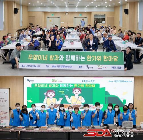 [½Åµ¿¾Æ¹æ¼Û Çϳ²½Ã=À̽ŵ¿±âÀÚ] Çϳ²½ÃÁ¾ÇÕ»çȸº¹Áö°üÀº 24ÀÏ º¹Áö°ü 4Ãþ ´ë°­´ç¿¡¼­ ¡®¿ì¾çÀÌ³× ¹äÂ÷¿Í ÇÔ²²ÇÏ´Â ÇѰ¡À§ ÇѸ¶´ç¡¯À» °³ÃÖÇß´Ù. ¿ì¾çÀç´Ü°ú º»Á×ÀÇ ÈÄ¿ø, ¡®2Ãþ¿¡ »çÁø°ü¡¯ÀÇ Àç´É±âºÎ·Î ÁøÇàµÇ¾úÀ¸¸ç, ¸íÀýÀ» ¾ÕµÎ°í »çȸÀû °í¸³ÀÌ ¿ì·ÁµÇ´Â Àú¼Òµæ ¾î¸£½Å 60¸íÀ» ÃÊÃ»ÇØ ÇѰ¡À§ Á¡½É°ú ¸íÀý ¼±¹°, Àå¼ö»çÁø ÃÔ¿µ ¼­ºñ½º¸¦ Á¦°øÇß´Ù.