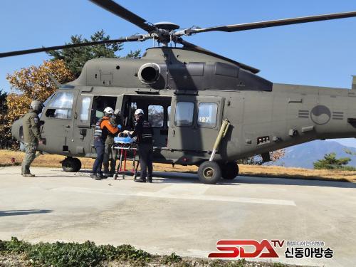 ¡Û À̹ø ÈÆ·ÃÀº ºÏÁ¢°æ µµ¼Áö¿ªÀÎ ±³µ¿¿¡¼ ÀÀ±ÞȯÀÚ ¹ß»ý ½Ã, ±º»çÅëÁ¦±¸¿ªÀ¸·Î ÀÎÇÑ ºñÇàÁ¦ÇÑ µîÀ¸·Î ¼Ò¹æÇ×°ø´ë Çï±â Ã⵿ÀÌ ¾î·Á¿î »óȲÀ» °¡Á¤Çϰí, ±º ¸Þµð¿Â Çï±â¸¦ ±ä±Þ ÅõÀÔÇØ ȯÀÚ¸¦ À̼ÛÇÏ´Â ½ÇÁ¦ »óȲ Áß½ÉÀÇ ÇÕµ¿ÈÆ·ÃÀ¸·Î ÁøÇàµÆ´Ù.