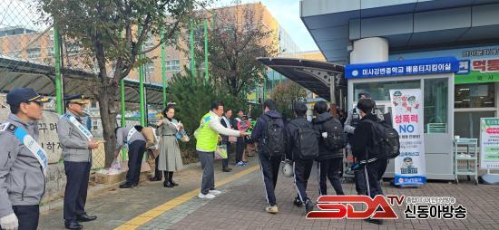 À̹ø Ä·ÆäÀÎÀº Çϳ²½Ã¸¦ ºñ·Ô Çϳ²°æÂû¼(¼Àå ¹Ú¼º°©), Çϳ²½Ã ÁßÇб³ÇкθðÆú¸®½º ¿¬ÇÕ´Ü(´ÜÀå ÀÌÀç¼÷), ¹Ì»ç°º¯ÁßÇб³ ÇкθðÆú¸®½º(ȸÀå Á¤ÁöÀ±), ¹Ì»ç°º¯ÁßÇб³ Çб³¿î¿µÀ§¿øÈ¸(À§¿øÀå ±è±³ÈÆ), ¹Ì»ç°º¯ÁßÇб³ Çкθðȸ(ȸÀå ÀÌÀ±ÇÏ), ¹Ì»ç°º¯ÁßÇб³(±³Àå ±èÀºÈ) 6°³ ´Üü 40¿©¸íÀÌ Âü¼®Çß´Ù. Âü¼®ÀÚµéÀº µî±·±æ ÇлýÀ» ´ë»óÀ¸·Î Çб³Æø·Â ¿¹¹æ ±¸È£¸¦ ¿ÜÄ¡¸ç µî±³Çϴ û¼Ò³âµé¿¡°Ô ¸®Çø´ ¹× ¹°Ç°À» ¹èºÎÇÏ¿©, û¼Ò³â Çб³Æø·Â ¿¹¹æ°ú û¼Ò³â ´ë»ó ¹üÁË¿¡ ´ëÇÑ °æ°¢½ÉÀ» °íÃë½Ã±â°í »çÀü ¿¹¹æÇϴ Ȱµ¿À» ÁøÇàÇß´Ù.