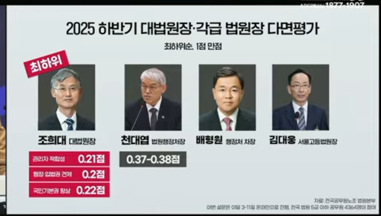 ¹ý¿øº»ºÎ´Â, Á¶Èñ´ë ´ë¹ý¿øÀåÀÇ »ç¹ýºÎ µ¶¸³ ¼öÈ£ ½ÇÆÐ¿Í ±¹¹Î±âº»±Ç º¸È£ ¿ªÇÒ ¹æ±â, »ç¹ýÇàÁ¤ Á߸³¼º ÈÑ¼Õ µî ÀÌÀ¯·Î ´õ ÀÌ»ó »ç¹ýºÎ ¼öÀåÁ÷À» ¼öÇàÇÒ ¼ö ¾ø´Ù°í °á·ÐÁþ°í, Áï°¢ÀûÀÎ »çÅ𸦠°Åµì Ã˱¸Çϸé¼, ¡°»ç¹ýºÎ ½Å·Ú ȸº¹ÀÇ Ã¹°ÉÀ½Àº Ã¥ÀÓ ÀÖ´Â °á´ÜÀ̸ç, ¹ý¿ø°ø¹«¿øÀÇ ¾ÐµµÀû Àǻ簡 °ð ±¹¹ÎÀÇ ¶æ¡±À̶ó°í ¹àÇû´Ù.