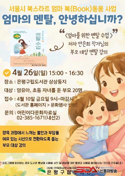 ½Åû ´ë»óÀº ¿µÀ¯¾Æ ¹× Ãʵî Àڳฦ µÐ ºÎ¸ð 20¸íÀ̸ç, 4¿ù 26ÀÏ ÀºÆò±¸¸³µµ¼°ü¿¡¼ ¾à 90ºÐ°£ ÁøÇàµÈ´Ù. Á¢¼ö´Â 4¿ù 10ÀϺÎÅÍ ÀºÆò±¸¸³µµ¼°ü ´©¸®Áý ¡®¹®ÈÇà»ç ½Åû¡¯¿¡¼ °¡´ÉÇÏ´Ù.