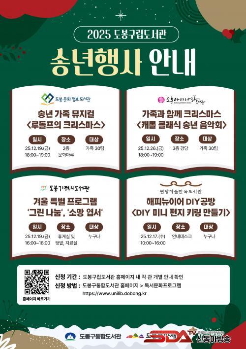 ¿ø´ç¸¶À»ÇÑ¿Áµµ¼°üÀº 12¿ù 17ÀÏ ¡®DIY ¹Ì´Ï ÆíÁö ۸µ ¸¸µé±â¡¯ Çà»ç¸¦, µµºÀ¹®ÈÁ¤º¸µµ¼°üÀº 12¿ù 19ÀÏ ¼Û³â °¡Á· ¹ÂÁöÄà ¡®·çµ¹ÇÁÀÇ Å©¸®½º¸¶½º¡¯ °ø¿¬À», µµºÀ±âÀûÀǵµ¼°üÀº 12¿ù 19ÀÏ µµ¼°ü ½Ä¹° ³ª´® ¡®±×¸° ³ª´®¡¯, ¡®µµ¼°ü¿¡¼ ¾²´Â »õÇØ ¼Ò¸Á ¿±¼¡¯ Çà»ç¸¦, µµºÀ¾ÆÀ̳ª¶óµµ¼°üÀº 12¿ù 26ÀÏ ¡®Ä³·Ñ Ŭ·¡½Ä ¼Û³â À½¾Çȸ¡¯¸¦ ÁøÇàÇÑ´Ù.