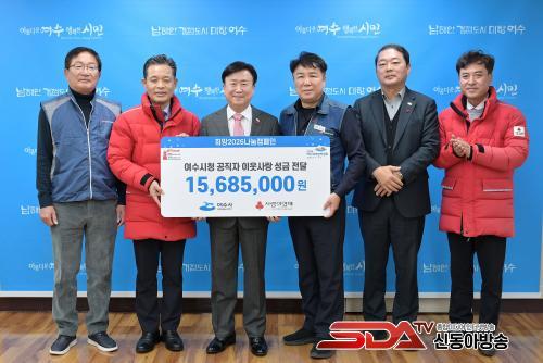 »çÁø=¿©¼ö½Ãû, Áö³­ 12¿ù 31ÀÏ ¿©¼ö½Ã Á÷¿øµéÀÌ ¡¸Èñ¸Á2026³ª´®Ä·ÆäÀΡ¹¿¡ ¼º±Ý 1,568¸¸ 5õ ¿øÀ» Àü´ÞÇß´Ù.