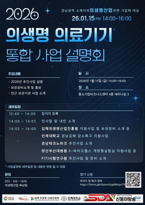 À̹ø ¼³¸íȸ´Â Áö¿ª ÀÇ»ý¸í »ê¾÷ÀÇ È°¼ºÈ¸¦ À§ÇØ ÁøÈï¿ø°ú ÀÎÁ¦´ëÇб³, °æ³²Å×Å©³ëÆÄÅ©, ¾ç»êºÎ»ê´ëÇб³º´¿ø, FITI½ÃÇ迬±¸¿ø µî 5°³ À¯°ü±â°üÀÌ ±ä¹ÐÇÏ°Ô Çù·ÂÇÏ¿© ¸¶·ÃÇÑ ÀÚ¸®·Î, 2026³âµµ¿¡ ÃßÁøµÇ´Â ±â°üº° Áö¿ø»ç¾÷À» ÇÑ´«¿¡ ÆÄ¾ÇÇÒ ¼ö ÀÖ°í, ±â°üº°·Î »êÀçÇÑ Áö¿ø»ç¾÷ Á¤º¸¸¦ ÅëÇÕÀûÀ¸·Î Á¦°øÇÔÀ¸·Î½á ±â¾÷µéÀÇ Á¤º¸ Á¢±Ù¼ºÀ» ³ôÀ̰í È¿À²ÀûÀÎ »ç¾÷ Âü¿©¸¦ µ½±â À§ÇØ ±âȹµÇ¾ú´Ù.