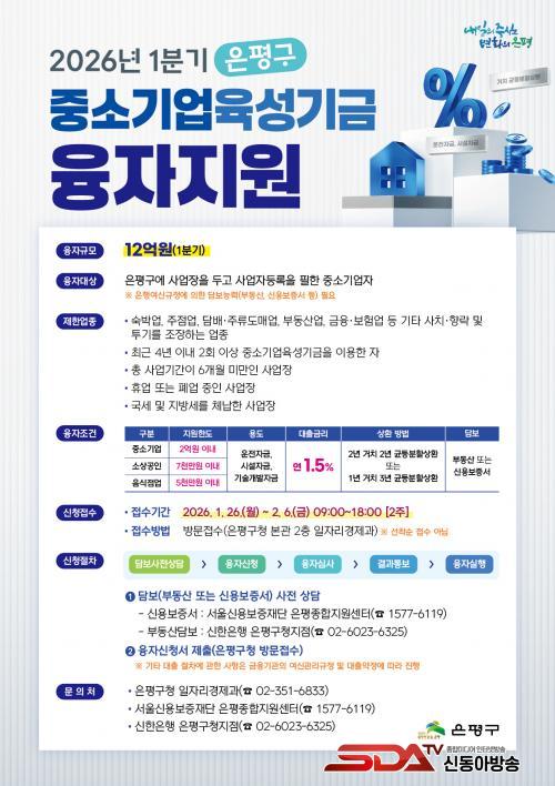 ½ÅûÀº ¿À´Â 26ÀϺÎÅÍ ³»´Þ 6ÀϱîÁö ÃÑ 2ÁÖ°£ ÁøÇàµÈ´Ù. Áö¿ø Çѵµ´Â ¡ãÁß¼Ò±â¾÷ ÃÖ´ë 2¾ï ¿ø ¡ã¼Ò»ó°øÀÎ ÃÖ´ë 7õ¸¸ ¿ø ¡ãÀ½½ÄÁ¡¾÷ ÃÖ´ë 5õ¸¸ ¿øÀ̸ç, ´ëÃâ±Ý¸®´Â ¿¬ 1.5%´Ù. »óȯ Á¶°ÇÀº 2³â °ÅÄ¡ 2³â ±ÕµîºÐÇÒ»óȯ, ¶Ç´Â 1³â °ÅÄ¡ 3³â ±ÕµîºÐÇÒ»óȯ Áß ¼±ÅÃÇÒ ¼ö ÀÖ´Ù.