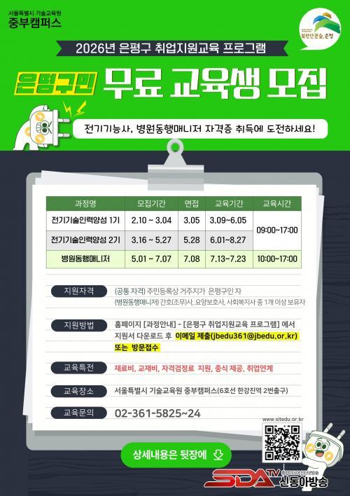 [½Åµ¿¾Æ¹æ¼Û ÀºÆò±¸=À̽ŵ¿±âÀÚ] ¼­¿ï ÀºÆò±¸´Â ±¸¹ÎÀÇ Ãë¾÷¿ª·® °­È­¸¦ À§ÇØ ¡®2026³â ÀºÆò±¸ Ãë¾÷Áö¿ø±³À° ÇÁ·Î±×·¥¡¯ ±³À°»ýÀ» ¸ðÁýÇÑ´Ù°í ¹àÇû´Ù.