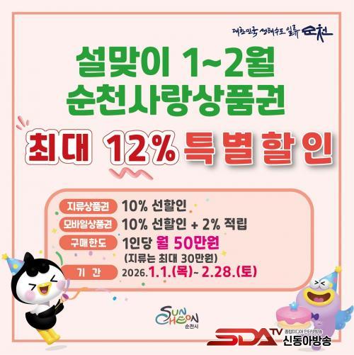 [½Åµ¿¾Æ¹æ¼Û ¼øÃµ=±è¿ëÈÆ ±âÀÚ] ¼øÃµ½Ã´Â ½Ã¹ÎµéÀÇ Àå¹Ù±¸´Ï ºÎ´ãÀ» ´ú°í Áö¿ª ³» ¼Òºñ¸¦ ÃËÁøÇϱâ À§ÇØ 1¿ùºÎÅÍ ÃßÁø ÁßÀÎ ¼øÃµ»ç¶û»óǰ±Ç ÇÒÀÎÇà»ç¸¦ ¼³ ¸íÀýÀ» Æ÷ÇÔÇØ 2¿ù ¸»±îÁö Áö¼Ó ¿î¿µÇÑ´Ù°í ¹àÇû´Ù.