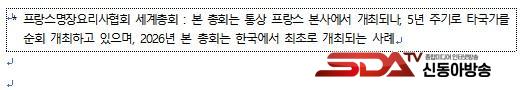 À̹ø ¹æ¹®Àº 3¿ù 15ÀϺÎÅÍ 21ÀϱîÁö ¿­¸®´Â 2026³â ÇÁ¶û½º¸íÀå¿ä¸®»çÇùȸ(MCF) ¼¼°èÃÑȸ*ÀÇ °ø½Ä ÇÁ·Î±×·¥ ÀÏȯÀ¸·Î ¸¶·ÃµÆ´Ù. ÃÑȸ¿¡ Âü°¡ÇÑ ¼¼°è °¢±¹ÀÇ ÇÁ¶û½º ¿ä¸® ¼ÎÇÁµéÀÌ ±¹³» ÁÖ¿ä ¼ö»ê¹° ½ÄÀç·á »ý»êÁö¸¦ ¹æ¹®ÇÏ´Â ÀÏÁ¤ÀÌ´Ù.