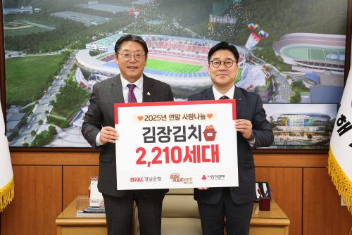 [½Åµ¿¾Æ¹æ¼Û °æ³²±èÇØ=³²±Ã¿µ±â±âÀÚ] ±èÇØ½Ã´Â 27ÀÏ BNK°æ³²ÀºÇà¿¡¼­ ±èÀå Çà»ç ¼º±Ý 2,800¸¸¿øÀ» ±âŹÇß´Ù°í ¹àÇû´Ù. BNK°æ³²ÀºÇàÀº 2005³âºÎÅÍ ¸Å³â °Ü¿ï ±èÀå Çà»ç ¼º±ÝÀ» ±âÅ¹ÇØ ¿À°í ÀÖ´Ù. À̳¯ ±âŹ½Ä¿¡´Â BNK°æ³²ÀºÇà ÇãÁ¾±¸ Áߺοµ¾÷±×·ìÀå°ú Á¶¼öÈ£ ±èÇØ½Ã¡¦